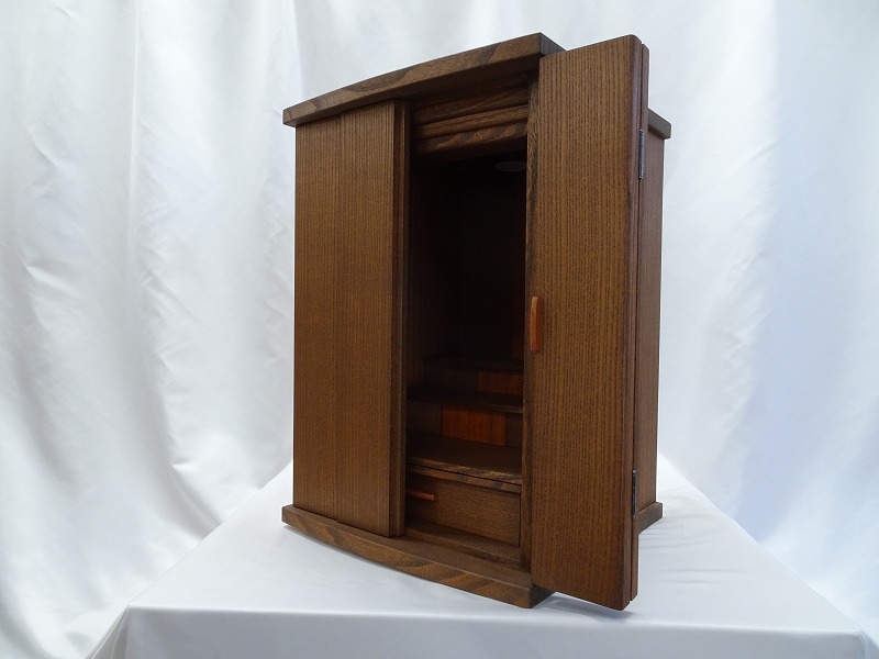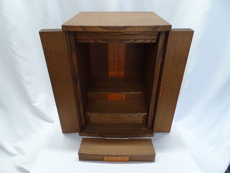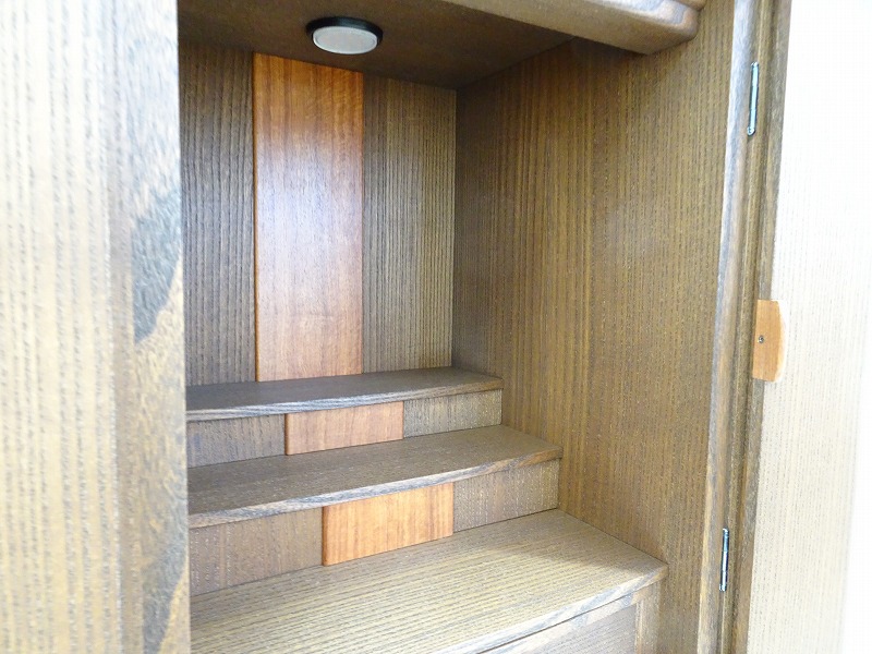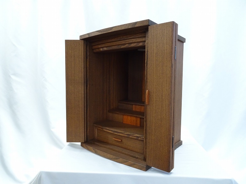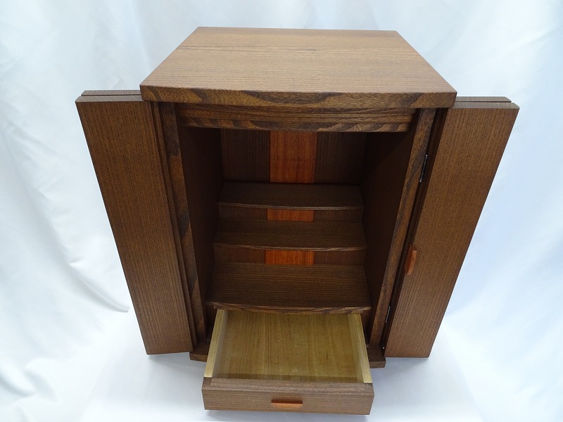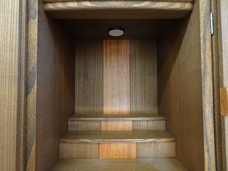 塗装の仕上はウォルナットオイル仕上げの塗料を使用しているので、普段からとても取り扱いがしやすいお仏壇です。