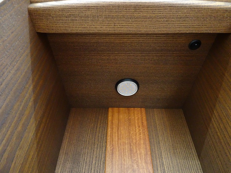 花梨材の無垢を中央に使用しており、最上段の棚は飾る高さにより取り外しが可能です。