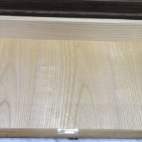 開き戸内部には上質な作り出し型の上盆が6杯入りで、盆内寸幅913mm 奥行377mm 深さ47mm お盆とお盆の間隔 90mm。