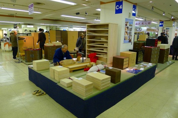 日頃 見る事のないような本物の桐たんすや日本の桐製品をご覧いただけました。