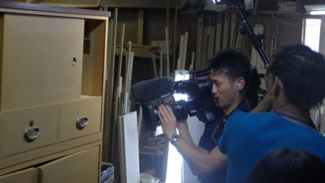 その模様を桐箪笥社長ブログで緊急アップします。あの公共放送のNHKが生中継に岸和田の初音の大阪泉州桐箪笥の工房に来てくれました。