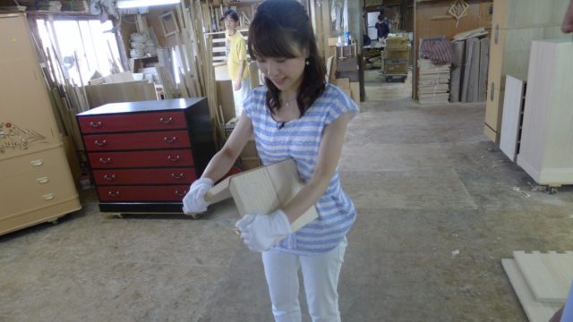 リポーターの石田鮎美さんが一生懸命、総桐箪笥の説明を覚えてくれました。