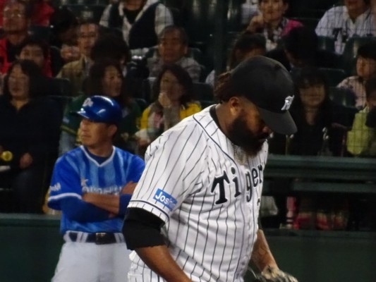なななんと、1球目を投げたとたんに、DeNAの筒香選手のレフトスタンドにホームラン打たれました。いきなり1球で金本監督お怒りで、投手交代!