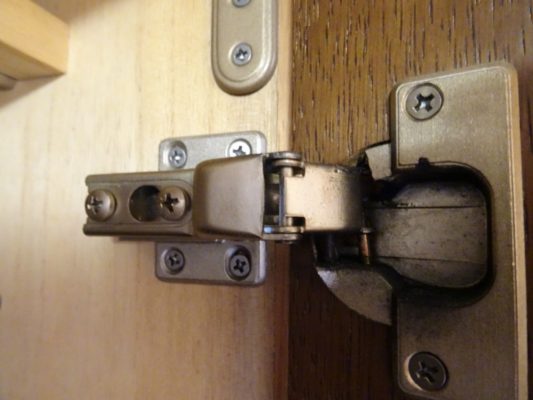 戸びらを持たせているスライド丁番(金具)が壊れています。