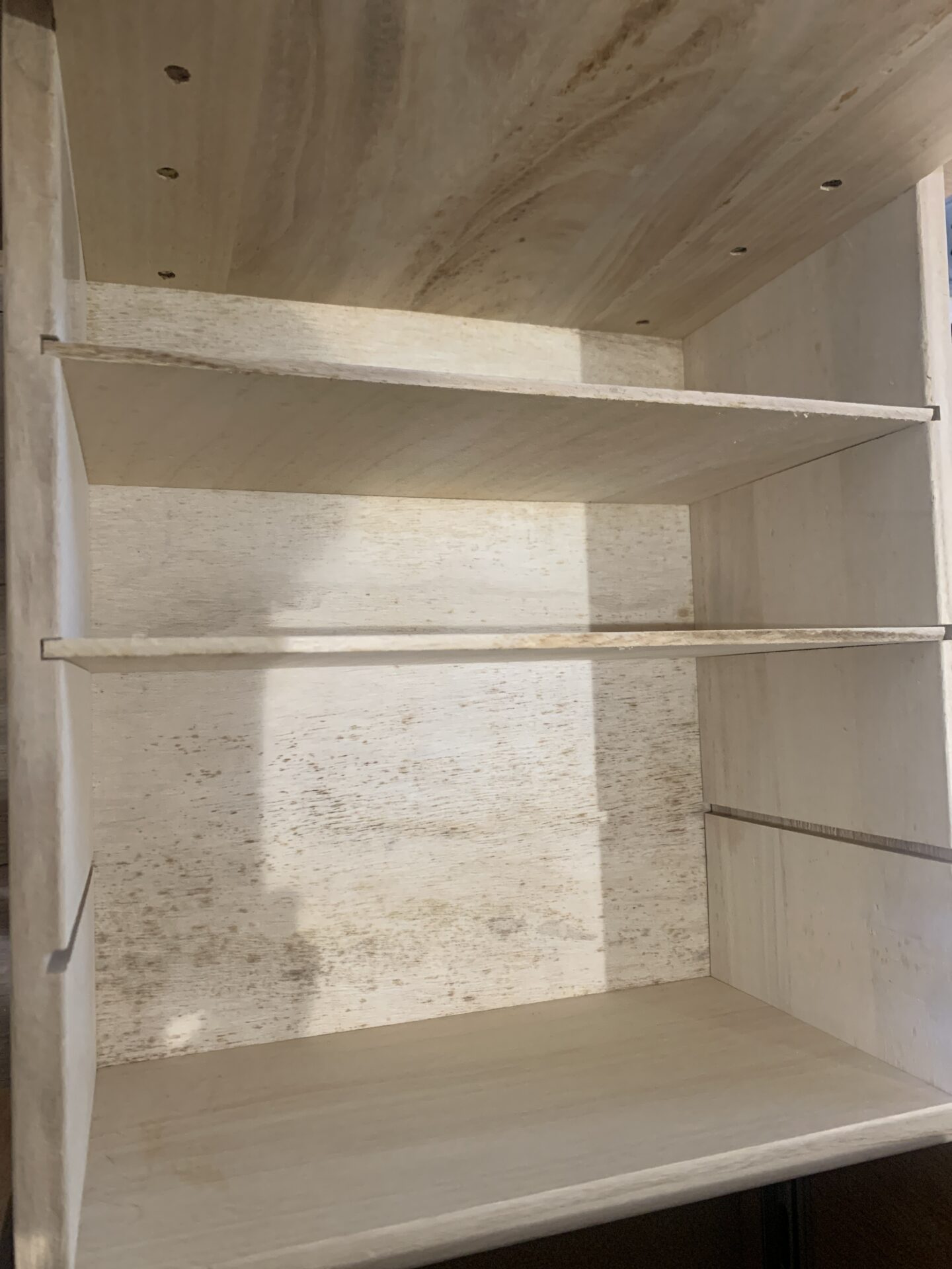 中の板の一部におそらく桐であろう素材が使われています。カビによるシミが出来てしまい、