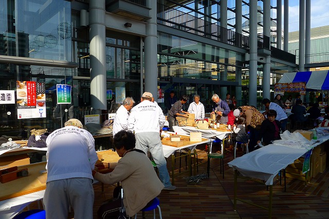 その中で、弊社の大阪泉州桐箪笥の桐の箱作り、焼桐花台作り体験コーナーも人気です。