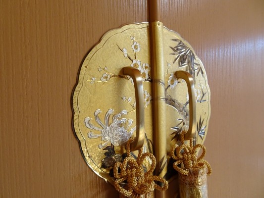 前飾りも素敵な金具をつけさせていただきました。四君子和紙金具といいます。