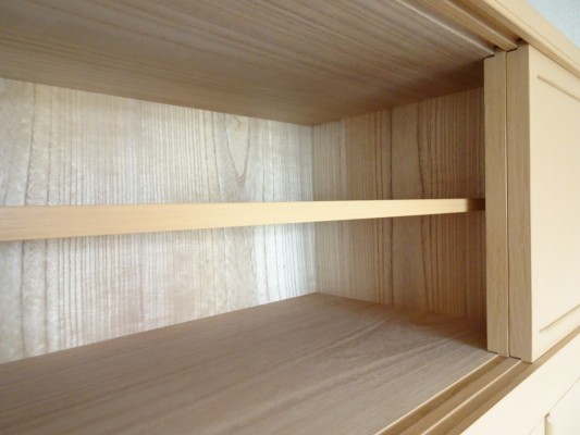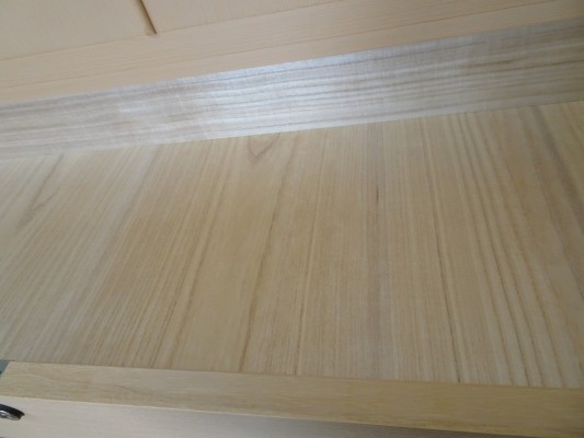 またお盆とお盆の間の固定棚(中棚)がない桐箪笥はえらんではいけません。この様に必ず必要で重要な役目をしている棚です。