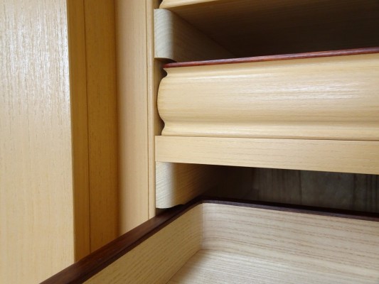 引出しの先組の組手も細かな手組みで伝統工芸士 朋光がコツコツと組み合わせてお作りいたしました。