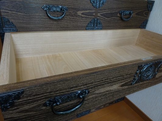 これが伝統工芸品なんです。K様だけの焼桐箪笥なのです。