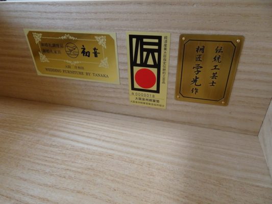 引出し内部には、伝統工芸士名 と経済産業大臣指定の伝統工芸証紙をご覧いただけます。