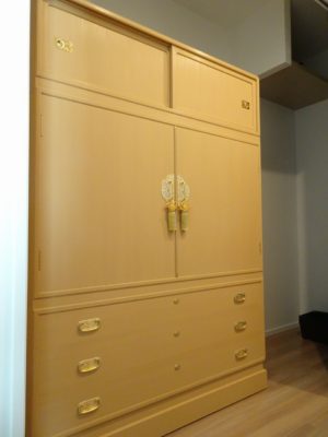 クローゼットの中に入れていただいていますが、こだわりの桐箪笥をお買い求めいただきました。