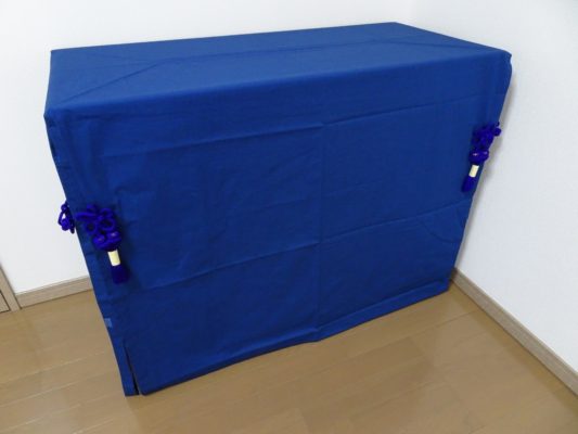 最後に先染めの紺色で、紺房の桐たんすのカバー(油単)を掛けさせていただきました。
