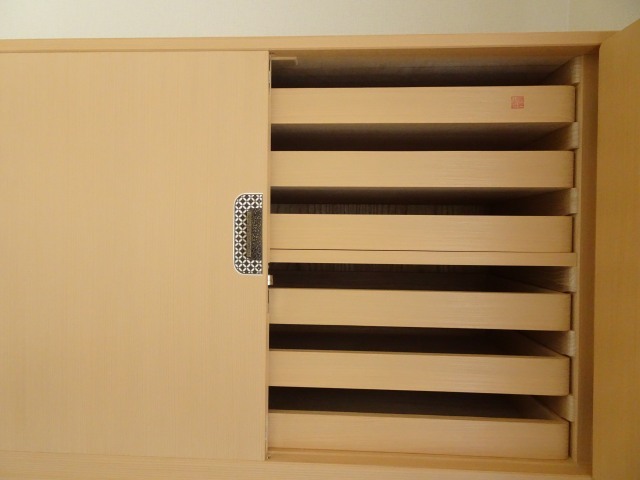 開き戸や引出しの桐の柾目の美しさを是非感じてください。