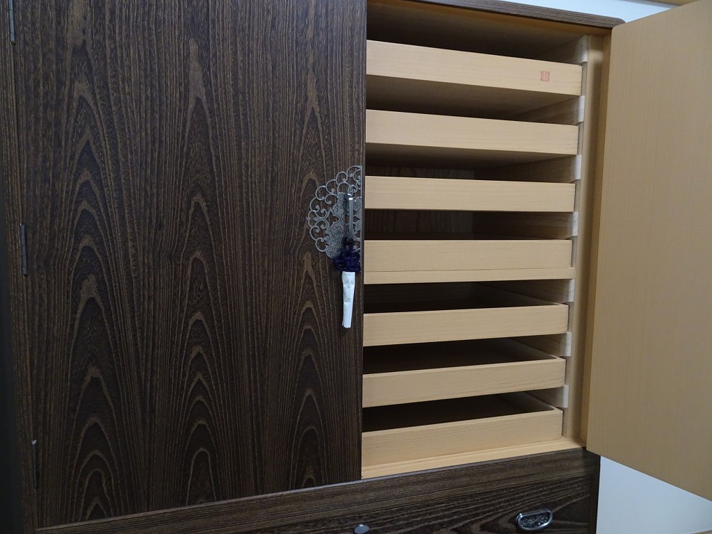 隙間のない気密性の優れた伝統工芸品の大阪泉州桐箪笥です。