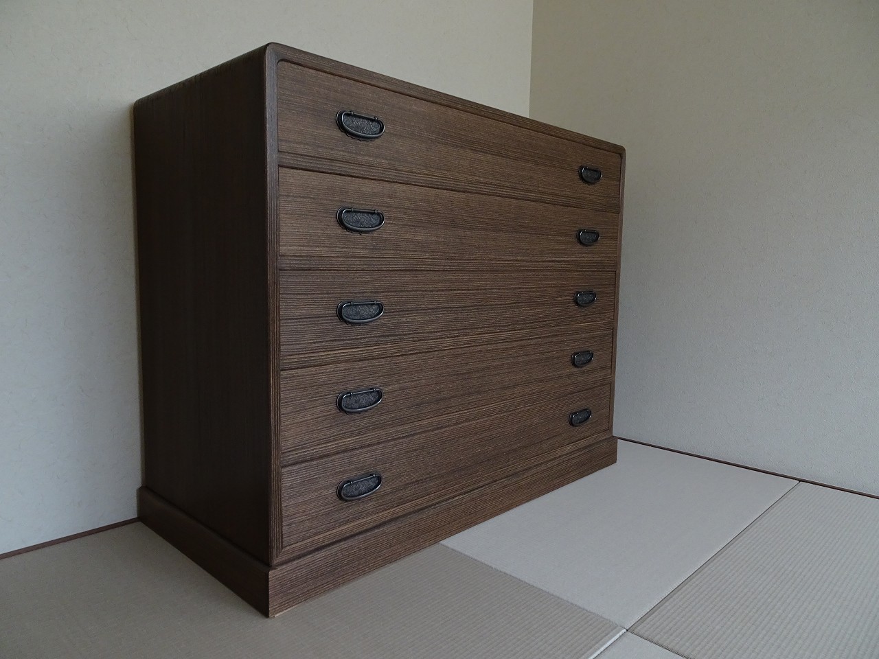 大阪泉州桐箪笥の初音の桐箪笥 総桐焼桐5段ひきだし箪笥をお届けさせていただきました