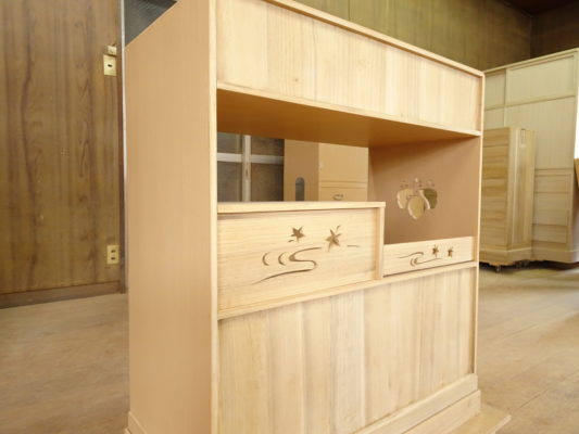 和棚は桐箪笥に比べれは小さいのですが、仕上げはやりにくく難し作業になります。