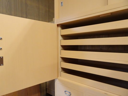 右側の戸の内部は洋服を吊れるように工夫されています。このような桐箪笥も大変珍しくてお客様が特別にご注文したのでしょうね。