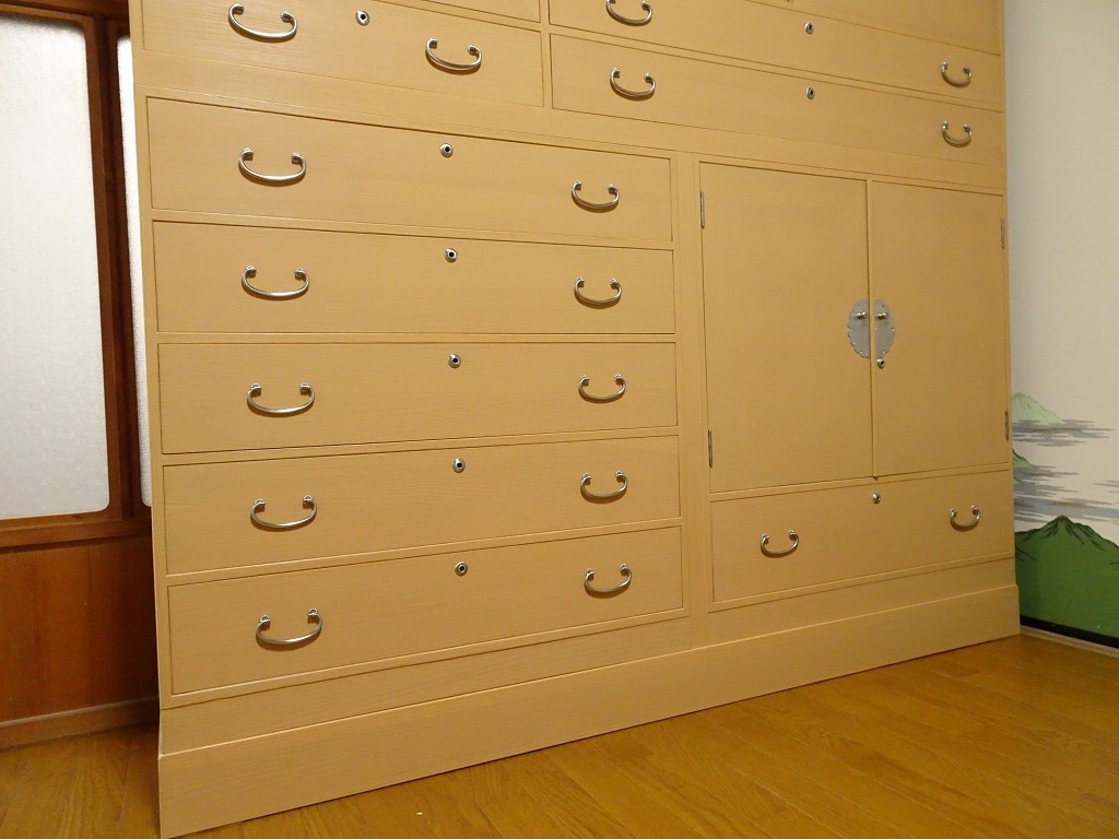 桐箪笥の洗い修理の納品事例 古い間箪笥の洗い修理をお届けいたしました。