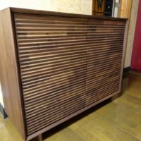 無事にお二階のリビングに設置させていただきました。木製のフレームは、今一番人気のウォールナット材でお作りさせていただきました。