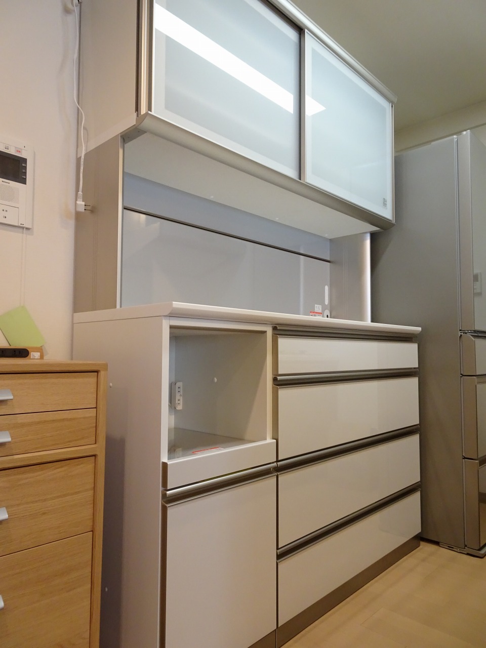 食器棚は、アヤノの食器棚 Casitaホワイトシリーズをお持ちいたしました。